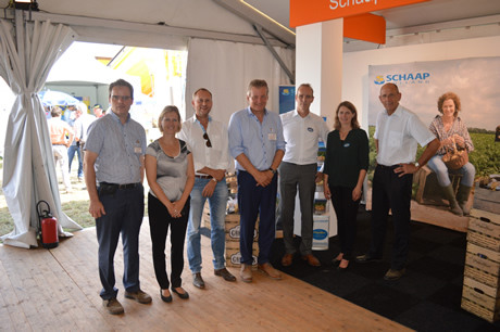 Der niederländische Botschafter in Frankreich Ed Kronenburg (rechts) und Cindy Hijdra vom Landbaurat (zweite von links) kamen einen Blick auf die Messe werfen. Desweiteren auf dem Foto: Jan Gottschall (NAO), André Adamse (Schaap Holland), Dick Hylkema (NAO), Hans Geling und Gesly Slomp (beide Schaap Holland)