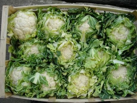 In der Bretagne ist die Anbaufläche für Blumenkohl in diesem Jahr 6% niedriger. Theo geht, selbstverständlich vom Wetter abhängig, von einer täglichen Anfuhr von 60.000 bis 70.000 sechser Kisten aus . "Zur Zeit haben wir noch Jojo-Preise, die sich zwischen 5,50 und 7,50 Euro bewegen."