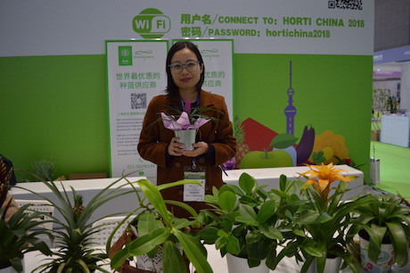 Neben allen Obst- und Gemüseunternehmen und Maschinen gibt es auch einige Blumenunternehmen. Ihre Stände sind sehr farbenfroh und wirklich schön anzusehen. Amanda von Deroose schilderte: „Das ist eine ziemlich gute Show für uns. Wir können unsere Produkte zeigen und interessierten Menschen erklären, worum es in unserem Unternehmen geht. Wir freuen uns sehr über die Teilnahme.“