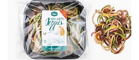 Das italienische Unternehmen Sipo bringt Gemüsespaghetti auf den Markt und erweitert somit das Veggies-Sortiment. Wir sprechen von Gemüse, das wie Spaghetti geschnitten ist und roh, gedünstet, gebraten oder gekocht genossen werden kann. Diese Spaghetti-Veggies eignen sich ideal als Beilage, als Ersatz für Pasta und als vegane Vorspeise.