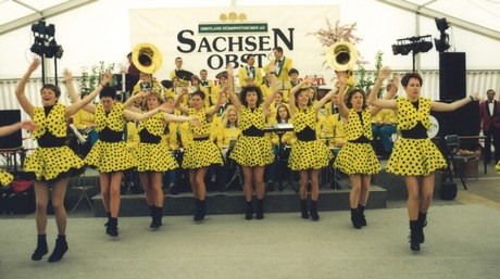 Bereits bei den ersten Sachsenobst-Festen konnten sich Sportvereine präsentieren. 1999 nutzten die Tänzerinnen des SV Thümmlitzwalde e.V. die Gelegenheit.