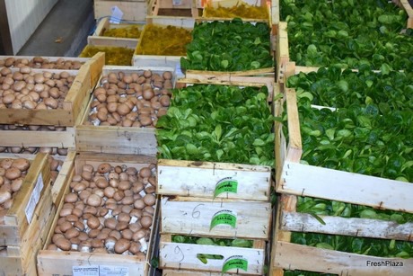 Ein großer Teil des Verkaufsbereichs ist den lokalen Produkten gewidmet. Im Moment finden wir hier hauptsächlich Wintergemüse, wie Sellerie, Lauch, Kohlköpfe und Karotten, die nur 10 Kilometer vom MIN-Markt entfernt angebaut werden.