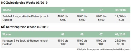 Der niederösterreichische Karottenmarkt präsentiert sich in guter Verfassung. Im Inland wird von zufrieden stellenden Umsätzen berichtet und auch im Export gab es zuletzt schon vermehrt Abschlüsse. Bei den Preisen gibt vorerst noch keine Änderung. Die Erzeugerpreise liegen stabil auf dem Niveau der Vorwochen.