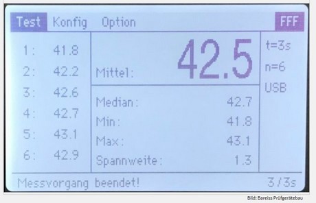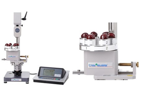 Den Anfang machte die Reifeprüfung von Avocados und Mangos. Da bislang lediglich Handhärteprüfgeräte auf dem Markt verfügbar waren, hat Seeobst in Zusammenarbeit mit Bareiss ein Fruchtfleischfestigkeitsmessgerät auf der Basis des hochpräzisen Messgerätes Digi test II entwickelt. Bis zu sechs Früchte werden dazu auf den Rotationstisch gelegt (s. Abb. 1) und die Messung mit einem einzigen Tastendruck gestartet. Das Gerät prüft vollautomatisch alle sechs Früchte und gibt die erzeugten Messwerte sowie einige statistische Berechnungen am Display der Elektronik aus. Das Gerät ist einfach zu bedienen und zeichnet sich laut Bareiss durch seine hohe Reproduzierbarkeit aus.