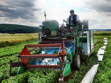 Georg Thalhammer auf der Erntemaschine