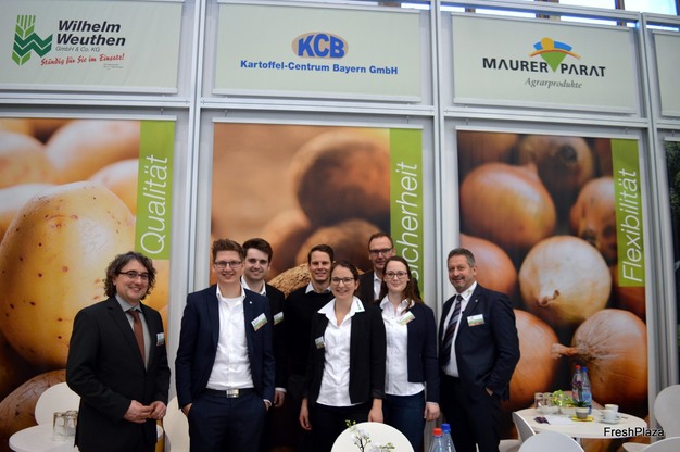 Die KCB auf der Fruit Logistica 2019, vertreten am Gemeinschaftsstand von Maurer-Parat (v.l.n.r.): Karsten Krisch (Maurer-Parat), Johannes Rohbeck (Wilhelm Weuthen GmbH & Co. KG), Tom Faessen (Wilhelm Weuthen), Richard Grob (KCB), Larissa Hafner (Wilhelm Weuthen), Stefan Claser (Wilhelm Weuthen), Christina Schröder (Wilhelm Weuthen) und Ludwig Hartmann (Maurer-Parat).