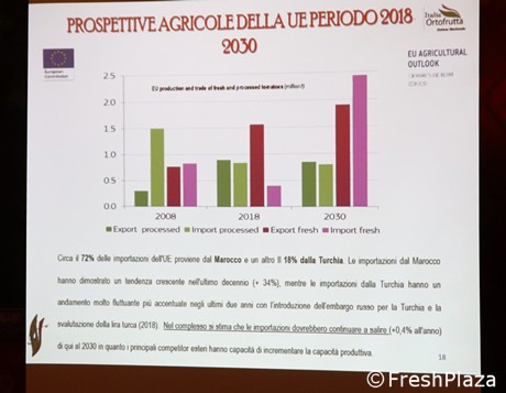 Massimo Pavan begann mit den Worten: "Tafeltomaten aus Marokko sind im Winter ein Problem, da sie unsere Preise nach unten drücken, aber etwas ändert sich, es scheint, dass sie weniger Tomaten zugunsten von Beeren anbauen. Gleichzeitig gibt es immer mehr technologische Gewächshäuser in Norditalien, Deutschland und verschiedenen osteuropäischen Ländern. Das bedeutet, dass wir in den nächsten Jahren immer weniger exportieren werden, da die Verbraucher lokale Produktionen bevorzugen."
