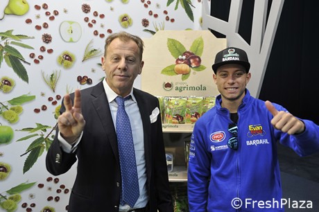 Agrimola sponsert den Supersport-Motorradrennfahrer. Links: Luca Sassi