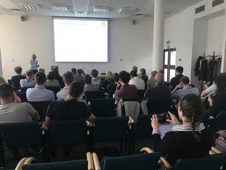 In der letzten Sitzung ließen sie eine Anzahl an ökonomischen Aspekten Revue passieren. Piotr Latocha von der polnischen „Warschau University of Life Science – SGGW“ stellte die aktuelle Situation der Kiwibeerenzucht vor und die Vermarktung derselben. Das Produktionswachstum kämpft weiter mit der fehlenden Bekanntheit der Frucht in der Öffentlichkeit. Auch der Frost in den Frühlingsnächten bleibt ein Problem. Der junge Züchter Adam Krostrzewa (Minikiwi Kostrazwa – PL) brachte die Erfahrungen aus seinem eigenen Betrieb, übernommen von seinem Vater, ein, vom Beginn 2011 bis heute. Er betonte die Möglichkeiten der Zucht, aber auch dass es in Bezug auf das Zuchtwissen noch einen weiten Weg zu gehen gibt. Er wird jetzt, nach der Rekordernte des letzten Jahres, mit einem Off-Year bei der Sorte Geneva konfrontiert. Aber die dynamische Vorgehensweise dieses jungen Produzenten macht Hoffnung für die Zukunft.