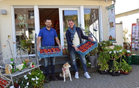 Dr. Holger Scherhag (rechts) und sein Partner Kevén Langenbach managen einen modernen Obstbaubetrieb, zu dem auch ein traditioneller Hofladen im Ortskern von Dieblich gehört. (Bildnachweis: GMH)
