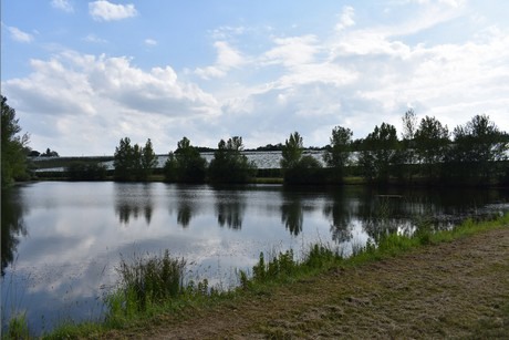 Künstlicher See inmitten der Obstgärten, der für die Bewässerung genutzt wird