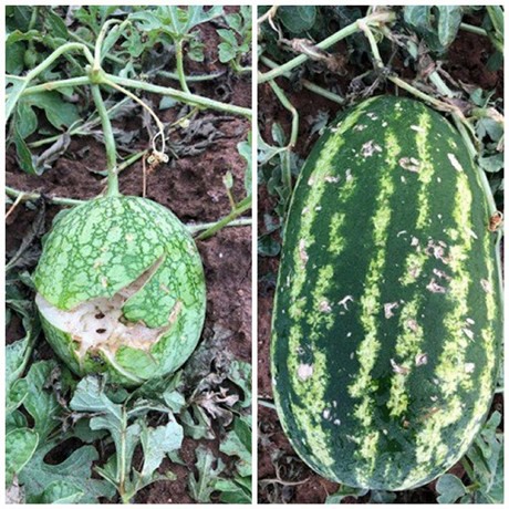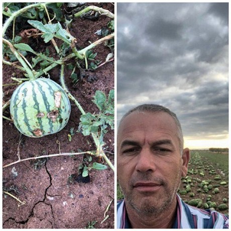 Links: Mini-Wassermelonen, die vom Hagel beschädigt wurden. Rechts: Tomasso Lella