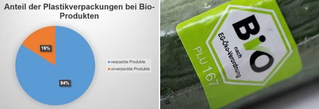 Über 80% des Bio-Obst und Bio-Gemüses wird in Plastikverpackung angeboten. Die Stiftung Konsumentenschutz (SKS) hat stichprobenartig 221 Produkte- unter anderem Gurken, Peperoni und Äpfel - in 10 verschiedenen Läden in Bern und Basel getestet. Dabei stellte die Stiftung fest, dass die Mehrheit der Produkte (54%) in Plastikverpackung angeboten wird. Ausgerechnet bei Bio-Gemüse war der Anteil an Plastikverpackung besonders hoch (84%). Bei konventionellen Produkten waren weniger als die Hälfte verpackt (44%).