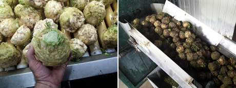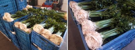 "Wir ernten nur tagesfrischen Knollensellerie in Spanien und transportieren die Ware dann geputzt und entsprechend gekühlt nach Venlo. Hier geschieht die weitere Aufbereitung, bevor die Ware zum Kunden geht. Zudem sind wir in der Lage alle gewünschten Kaliber zu liefern, von klein bis grob."