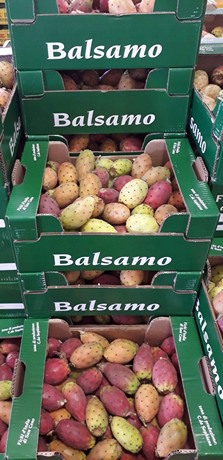 „Unsere Kaktusfeige stammt direkt von einem bekannten, sizilianischen Unternehmen in San Cono (Catania) in 30x40 Pappkartons. Wir haben diese leckere Frucht die letzten drei Jahre kommerzialisiert und unsere Kunden scheinen nicht mehr ohne sie klarzukommen.“