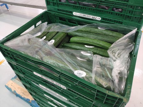 „Auf der Verpackungsebene gibt es eine boomende Nachfrage nach Gurken, die nicht mit Kunststoff überzogen sind. Um den Transport zu erleichtern, werden die Kartons mit einem Beutel abgedeckt, der am Bestimmungsort recycelt wird“, erklärt J.M. López den Vorgang weiter: