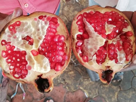 Die Granatäpfel der Sorte Bhagawa werden von ausgewählten Erzeugern und Lieferanten im westindischen Anbaugebiet Maharashtra bezogen. Die Region ist weitaus über die Landesgrenzen bekannt für ihren großflächigen Granatäpfelanbau.