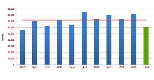 Die Saison 2018/2019 war im Juni zu Ende, insgesamt wurden 82.082 Tonnen geerntet. 54% der Gesamtverkäufe wurden in Deutschland und Frankreich getätigt, das entspricht 30.000 Tonnen. Eine kleinere Menge wurde an Drittmärkte exportiert (2.868 Tonnen) und außerdem lag ein Fokus darauf, Märkte wie die Schweiz, Südafrika und Kanada zu erschließen. Auf dem lokalen Markt wurden insgesamt 7.000 Tonnen verkauft und verarbeitet wurden 11.700 Tonnen.