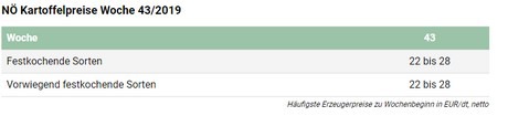 Die österreichische Erdäpfelernte 2019 ist praktisch abgeschlosse. Die letzten verbleibenden Felder dürften noch diese Woche gerodet werden. Die Abgabebereitschaft der Landwirte bleibt, angesichts des