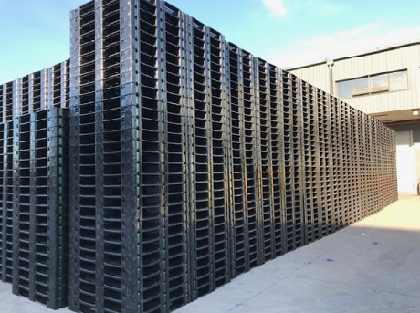 Ihre Kunststoffpaletten haben eine Lagerkapazität von 1,2 Tonnen. Der einzige unverarbeitete Kunststoff auf den Paletten sind die drei Bänder über die gesamte Länge, die etwas breiter als üblich sind und als vorgefertigte Balken dienen. Dadurch wird die Möglichkeit des Zusammenbruchs von Paletten mit schweren Früchten wie Zitrusfrüchten oder Äpfeln erheblich reduziert.