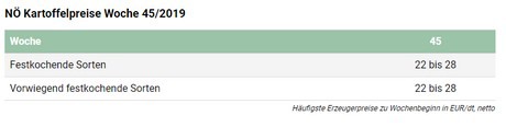 Die Lage am österreichischen Erdäpfelmarkt gestaltet sich ruhig und ausgeglichen. Die Lager der Händler sind einigermaßen gut gefüllt, wobei auch weiterhin Kartoffeln von den Landwirten angeliefert werden. Angesichts der fehlenden mittelfristigen Preisperspektiven trennen sich heuer viele Landwirte lieber früher als später von ihrer Ware. Das Inlandsgeschäft läuft derweil novembertypisch ruhig und unspektakulär. Die Haushalte sind meist noch gut mit Aktionsware eingedeckt.