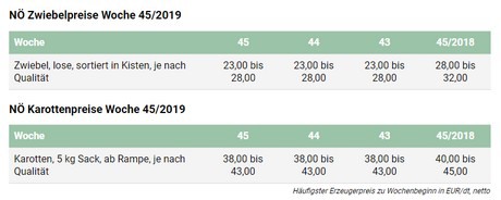 Der niederösterreichische Karottenmarkt steht weiterhin im Zeichen der Einlagerungen. Die Erntearbeiten laufen auch wenn die Erntetemperaturen nach wie vor zu hoch sind. Die Ernte dürfte durchschnittlich ausfallen, jedoch sind heuer höhere Ausleseverluste durch Mäusefraß zu beklagen. Die Inlandsnachfrage zeigt sich novembertypisch ruhig. Bei den Erzeugerpreisen gibt es keine Änderung zur Vorwoche.