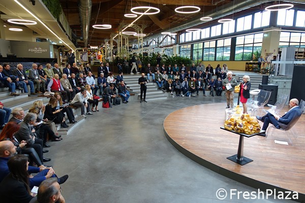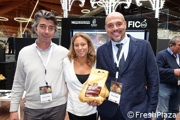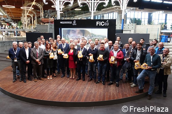 Circa 11.000 Tonnen wurden 2019 geerntet. Das Konsortium umfasst 18 Partner und 64 Produzenten. Die Produktionsgegend liegt in Bologna. Diverse Produzenten nahmen an der Präsentation bei Fico teil.