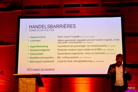 Kein Zwiebeltag ohne eine Präsentation von Gijsbrecht Gunter, daher hielt auch diesmal der Vorsitzende der Holland Onion Association eine Rede über den weltweiten Handel mit diesem am häufigsten gegessenen Gemüse. Das Bevölkerungswachstum (In Afrika werden wir 2050 von 1,4 auf 4 Milliarden Menschen steigen), die Wirtschaft und der Obst- und Gemüsekonsum, vor allem in Afrika, Asien und Australien, bieten den Zwiebelexporteuren große Chancen. "Im Jahr 2050 brauchen wir zusätzlich 150 Millionen Tonnen Zwiebeln!"