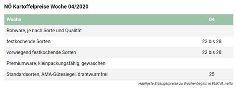 Angesichts der steigenden qualitätsbedingten Aussortierungen und dem stetigen Inlandsgeschäft dürften die Vorräte überschaubar sein. Bei den Erzeugerpreisen gibt es keine Änderung. In Niederösterreich wurde zu Wochenbeginn ein Preisband von 22 bis 28 Euro/100 kg je nach Sorte und Qualität genannt, wobei für drahtwurmfreie, kleinpackungsfähige Premiumware mit AMA-Gütesiegel meist 25 Euro/100 kg bezahlt werden. Aus Oberösterreich wurden Preise von bis zu 28 Euro/100 kg gemeldet.