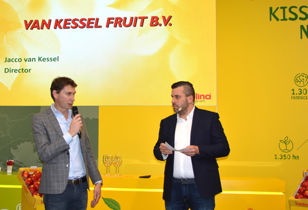 Die Großhandelsfirma Van Kessel Fruit BV wurde während der diesjährigen Fruit Logistica als neuer Partner für Evelina in den Niederlanden präsentiert. Laut Jacco van Kessel seien die Niederlande bislang "ein Neuland" für den Pinova-Mutant gewesen: Der Fruchthändler ist dennoch bestrebt den Clubapfel die nächsten Jahre auch am niederländischen Markt bekannter zu machen.