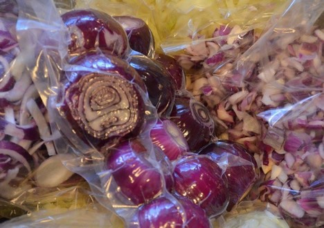 Verarbeitete rote Zwiebel in verschiedenen Varianten.