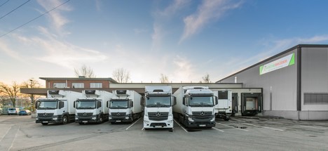Blick auf den Fuhrpark und Firmensitz am Freiburger Stadtrand, in unmittelbarer Nähe des hiesigen Großmarktes.