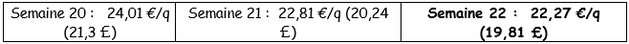 Gewichtete Preise (rote und weiße Sorten) an der Roeselare-Auktion (Quelle: REO via PCA):