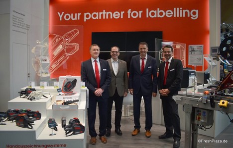 Am Stand der Firma contact auf der expoSe 2019: Harald Boller, Kay Wagner, Harald Jantzen und Thomas Helfrich. Die Herren nahmen an ihrem Stand Bestandskunden und Interessierte bei Würstchen und Kaffee in Empfang.