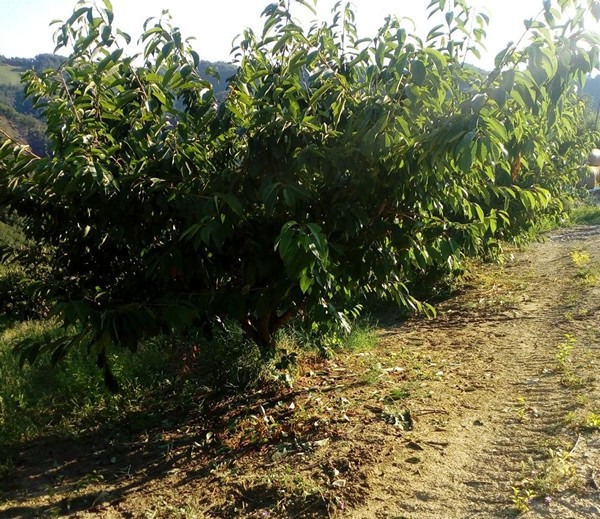 Kirschen und Blätter liegen auf der Venzi Plantage am Boden
