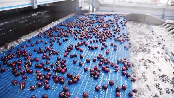 Der Compac Small Fruit Sorter separiert die einzelnen Früchte und leitet sie auf Fließbänder, wo jede einzelne Kirsche unter den InVision2 Kameras rotiert. Die Kameras machen 70 Fotos pro Kirsche und analysieren so, die Farbe, Qualität und Konsistenz der Frucht. Anschließend werden die Kirschen durch Wasserrinnen transportiert, danach auf Sortiertische und anschließend in die IOCEL Kisten-Befüller. Während des Verpackungsprozesses kontrollieren Mitarbeiter händisch die Qualität der Früchte, die verpackt werden. So können die Einstellungen des Systems weiter angepasst werden und wir können doppelt sicher sein, dass wir unseren Kunden nur die beste Qualität liefern. Bevor die Kisten auf Palletten gestellt werden, wird noch eine weitere Qualitätskontrolle vorgenommen. Anschließend kommen die Kisten in ein Kühllager. Dort bleiben sie, bis sie für den Transport verladen werden.