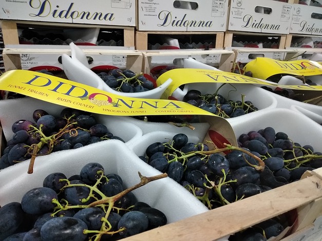 Der Importeur führt die Trauben unter den Marken Nero Premium, Didonna und Supreme. "Unsere Eigenmarke Nero Premium ist den Trauben von persönlich ausgewählten Kleinbauern vorbehalten. Diese Familienunternehmen befinden sich alle in Apulien, in der Gegend von Rutigliano/Polignano", sagt Koos. "Wir haben drei- bis viermal pro Woche Neuankömmlinge dieser Trauben in 5 kg, 4,5 kg und 4x1 kg Packungen. In Programmen sind auch Schalen mit 10x500 g oder 10x1 kg möglich."