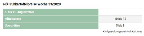 Absatzseitig zeigt man sich bei den Mengen in Richtung Lebensmitteleinzelhandel weiterhin zufrieden. Auch Exporte laufen bereits in überschaubarem Umfang. Die Nachfrage von Seiten der Gastronomie und des Gastrogroßhandels bleibt dagegen ruhig. Die Erzeugerpreise konnten sich auf dem Vorwochenniveau behaupten. In Niederösterreich, Burgenland und der Steiermark wurden zu Wochenbeginn für mittelfallende Ware meist 12 Euro/100 kg bezahlt. Für Übergrößen lagen die Preise bei 7 bis 8 Euro/100 kg. In Oberösterreich wurden zu Wochenbeginn unverändert bis zu 22 Euro/100 kg bezahlt.