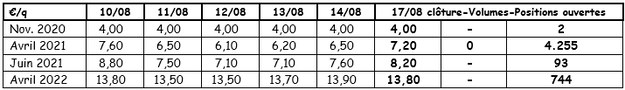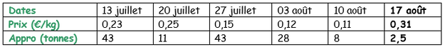 Gewichtete Preise (rote und weiße Sorten) an der Roeselare-Auktion (Quelle: REO via PCA):
