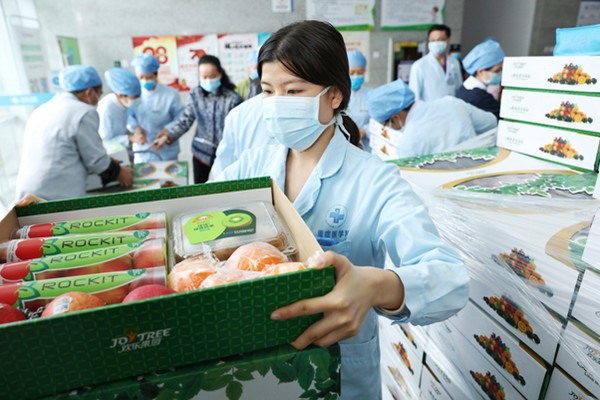 Joy Wing Mau unterstützt medizinisches Personal an vorderster Front und liefert hochwertiges Obst an Ärzte, Krankenschwestern und andere Mitarbeiter.