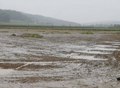 Der Süden Österreichs wurde seit dem Wochenende – mit Schwerpunkt heute am späten Nachmittag – durch Unwetter erneut stark getroffen. Starkregen mit oftmals großflächiger Überschwemmung und Hagel schädigten vielerorts zum wiederholten Male landwirtschaftliche Flächen: „Aufgrund massiver Unwetterzellen im Burgenland, in Kärnten und in der Steiermark wurden auf einer Agrarfläche von rund 7.000 Hektar Wein-, Obst- bzw. Gemüsekulturen, Acker- und Grünlandflächen verwüstet.