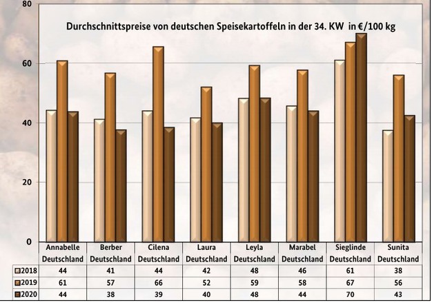 Einheimische Kartoffeln dominierten offensichtlich das Geschehen. Das Sortiment war weit aufgefächert und genügte mit Leichtigkeit, um die Nachfrage zu befriedigen. Das Itneresse war nicht besonders stark ausgeprägt. Nicht zuletzt ferienbedingt verliefen die Geschäfte sehr ruhig, geht aus dem aktuellen BLE-Marktkommentar hervor.