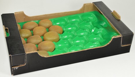 Entlang des gesamten Umfangs befinden sich spezielle Rippen, die auf die Kistenwände gleiten und die Einleger an Ort und Stelle fixieren. Sie sind in den Standardgrößen 60x40 cm, 50x30 cm und 40x30 cm erhältlich. Es stehen über vierzig verschiedene Produkte zur Verfügung, von speziellen Kiwifruchtwaben bis zu den verschiedenen Modellen, die für runde Früchte (Baumobst, Steinobst) bestimmt sind.