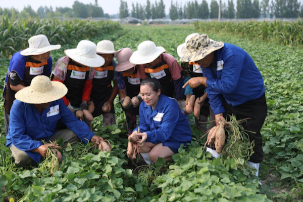 "Unsere lila und roten Süßkartoffeln kommen alle von der Plantage unseres Unternehmens in Shandong. Wir haben für die Farm eine Sandsteinregion ausgesucht, weil es ein Boden ist, bei dem das Wasser bei stärkeren Regenfällen gut ablaufen kann. Das ist sehr wichtig für die Qualität und das Wachstum der Süßkartoffeln und deswegen sind unsere Süßkartoffeln süßer und halten sich auch länger im Lager", sagte Ma Yan von Shandong Hongshu Agricultural Science and Technology Co., Ltd.