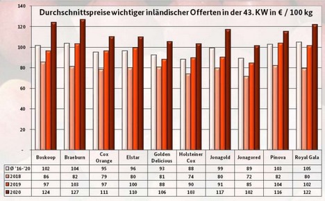 Einheimische Äpfel dominierten das Geschehen, allen voran Elstar, Jonagold und Royal Gala. Die Präsenz von Boskoop und Pinova dehnte sich augenscheinlich aus, die von Delbarestivale begrenzte sich kontinuierlich. Aus Italien stammten vorrangig Royal Gala und Golden Delicious. Französische Abladungen waren selten und kamen über einen ergänzenden Status nicht hinaus. Dasselbe traf auf niederländische Elstar und Boskoop zu. Günstige Gala und Golden Delicious gewannen in Berlin Marktanteile, da sie nur 0,75 € je kg kosteten.