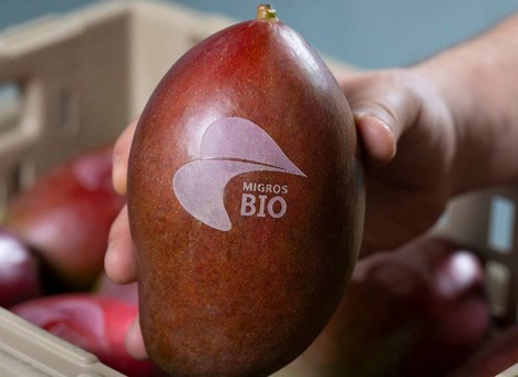 Wenn ab sofort in allen Migros-Supermärkten tätowierte Mangos in Bioqualität angeboten werden, so handelt es sich dabei weder um eine optische Aufhübschung noch um einen Marketing-Gag. Es steckt ein ökologisches Ziel dahinter, denn indem man das Migros-Bio-Logo in die Oberfläche der Früchte eingraviert, werden die umweltschädlichen und bei der Kundschaft unbeliebten Kunststoffaufkleber überflüssig. So lassen sich die Mangos aus biologischem Anbau auch weiterhin klar von konventionell kultivierten Exemplaren unterscheiden, wie es das Gesetz verlangt.