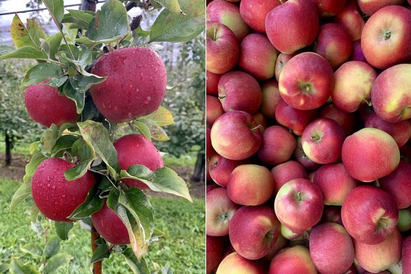 "Die Geschichte des Giga beginnt im Jahr 2002, als die erste Bestäubung stattfand", erklärt Nicolas. "Es ist eine Kreuzung zwischen der Sorte Gold Rush und Nicotor (Kanzi). Der Name der Sorte ist Ipador, aber der Apfel soll unter dem Namen Giga vermarktet werden. Er ist ein schorfresistenter Apfel mit sehr guter Lagerfähigkeit. Der Giga bleibt bis zum Ende der Saison hart und saftig und ist aufgrund seiner guten Lagerfähigkeit sehr einfach zu bewahren. Selbst zu Hause beim Verbraucher kann der Apfel problemlos zwei Wochen in der Obstschale liegen, ohne seine Knackigkeit zu verlieren."