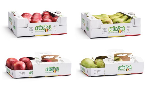 "Eine ansprechende und übersichtliche Verpackung ist der beste Weg, um eine Geschichte zu vermitteln und diese zu verstärken. Deshalb landete Fairebel beim Verpackungsspezialisten LC Packaging, einem in der Obst- und Gemüsewelt bekannten Namen im Bereich der Verpackungen für Obst, Gemüse und landwirtschaftliche Kulturen. "Gemeinsam mit Kelly Indeherberge von LC Packaging haben wir uns zusammengesetzt und unsere Ideen und Wünsche besprochen. Einer unserer größten Wünsche war eine nachhaltige Verpackung. Man kann keine fairen Früchte in einer nicht nachhaltigen Verpackung präsentieren. Deshalb haben wir uns für zwei verschiedene Arten von Kartonverpackungen entschieden", sagt Xavier. "Wir haben eine Pappschachtel mit 2 Kilo und eine Pappschale mit einer Hülle für 1 Kilo Äpfel oder Birnen."