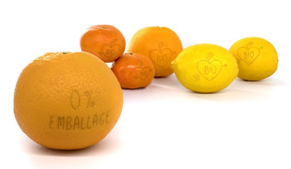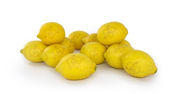 Das Laser Label zeigt ein Herz und den Schriftzug "Bio". Diese Art des Labelings sieht nicht nur hübsch aus, sondern hat viele Vorteile. "So sehen die Kunden sofort, dass es sich um Bio-Produkte handelt. Viele Supermarktketten sind der Meinung, dass Bio-Obst verpackt sein muss, um es zu kennzeichnen und entsprechend zu promoten. Durch die Laserbeschriftung, auch 'Natural Branding' genannt, können wir zum einen Plastik bei der Verpackung einsparen und zum anderen die Verpackungskosten senken. Die Technik beeinträchtigt weder die Qualität noch die Haltbarkeit des Produkts und macht es gleichzeitig attraktiver für den Kunden".