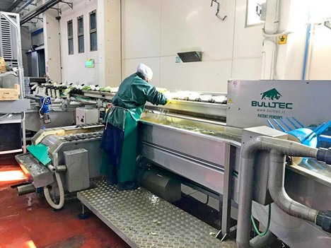 Es ist ein neues Konzept, sodass trotz Wasser und Schmutz sauber und effizient gearbeitet werden kann. Bulltec hat sich außerdem dazu entschieden, das Transport- und Sortierungssystem von Blattgemüse zu erneuern. Bei diesen Gemüsesorten braucht man in der Regel sehr viel Wasser zur Reinigung, weil sie direkt aus dem Boden kommen und daher natürlich sehr sandig und schmutzig sind.